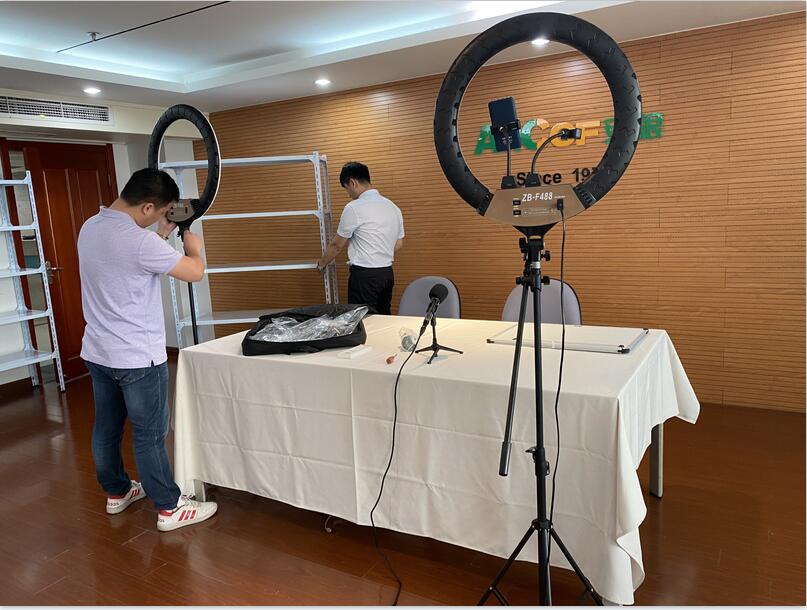 作為網上廣交會的主戰場,直播間的建設不容小覷,從直播間硬件設施搭建,到網絡服務支撐,各成員企業細心謀劃,精心準備。各業務部門全力以赴,草擬直播腳本,提前模擬“練兵”,對試播中出現的問題進行及時地總結、調整和改進,業務員們迅速掌握相關直播技巧,確保以專業的水平和最佳的狀態完成本次參展任務。