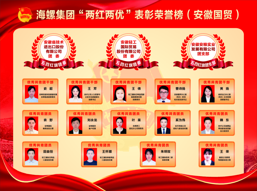 海螺集團(tuán)“兩紅兩優(yōu)”表彰榮譽(yù)榜(安徽國(guó)貿(mào))