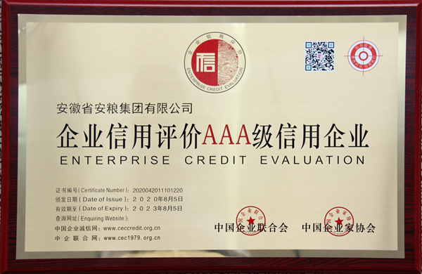 近日,中國企業(yè)聯(lián)合會、中國企業(yè)家協(xié)會公布了2020年第一批信用企業(yè)名單,安糧集團及所屬合肥建工公司雙雙榮獲“企業(yè)信用評價AAA級信用企業(yè)”稱號。
