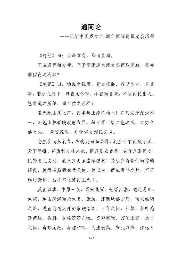 通商論——記新中國成立70周年國際貿易發展歷程